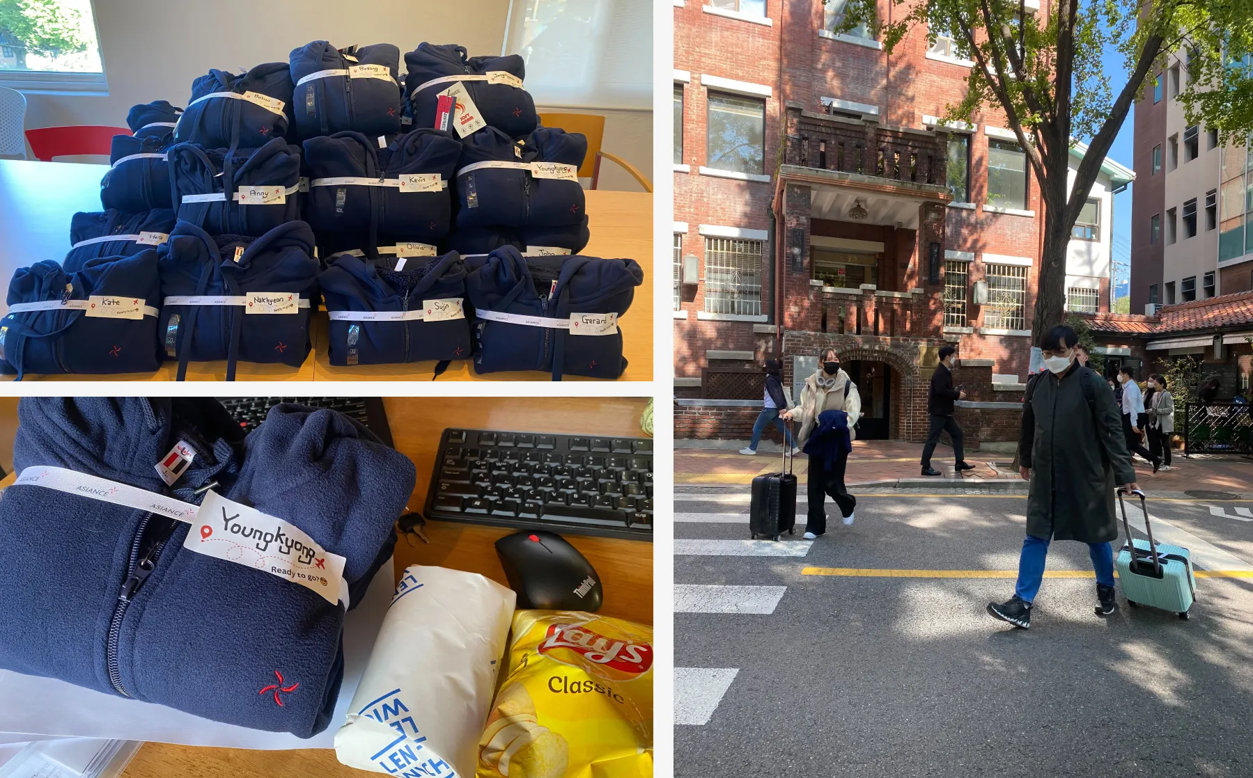 피플팀에서 장인정신을 발휘하여 포장한 아지앙스 Hoodie와, 여의도에서부터 공수한 맛집 샌드위치를 받아들고 공항으로 떠날 준비 완료~